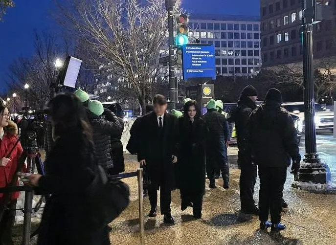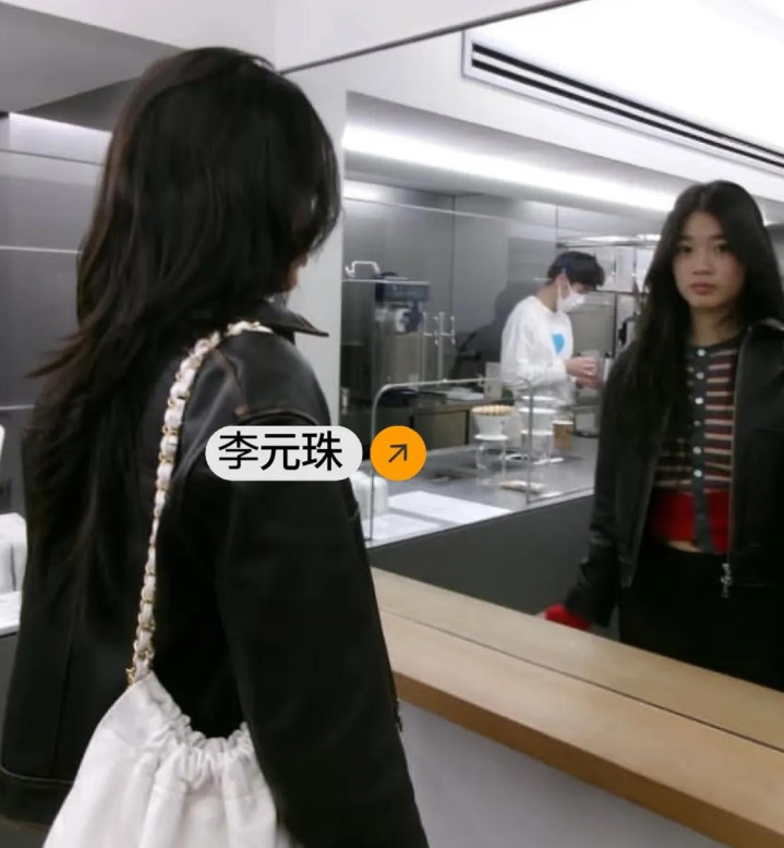 随后他小女儿李元珠亮相,李元珠剪了短发,也是一件黑色大衣,走路很快,新发型超级好看。