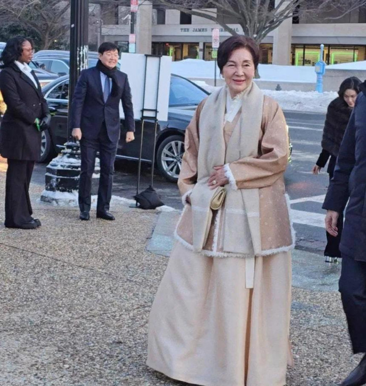 这次晚宴,这些人大部分都开了。洪罗喜率先到场,一身传统白色韩服,优雅大气,端庄得体,已经81岁了,还身姿挺拔,一头黑发,保养超级好,而且超级有气质。毕竟她出身优越,嫁的也好,还带着娘家人飞升,天生好命,现在状态真是好到没话说。